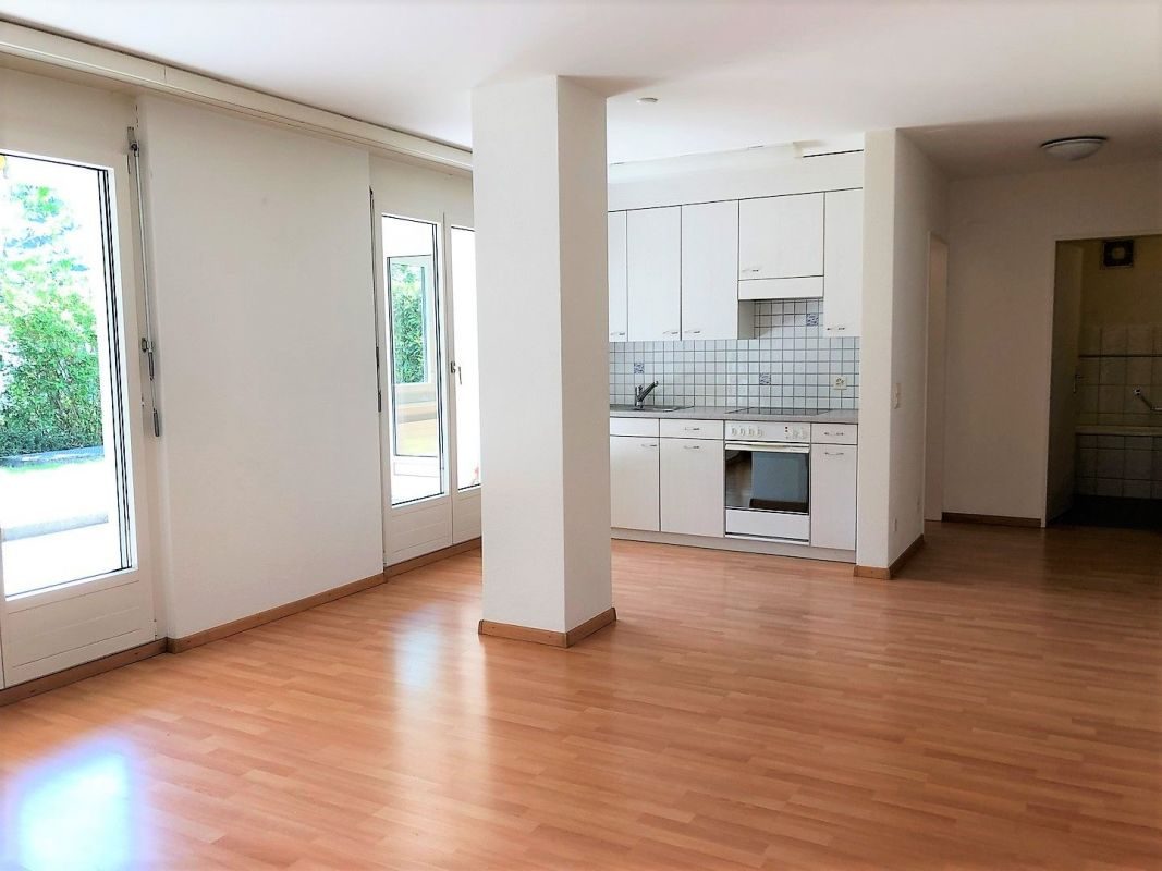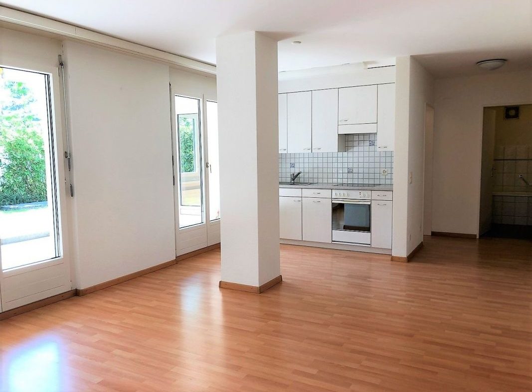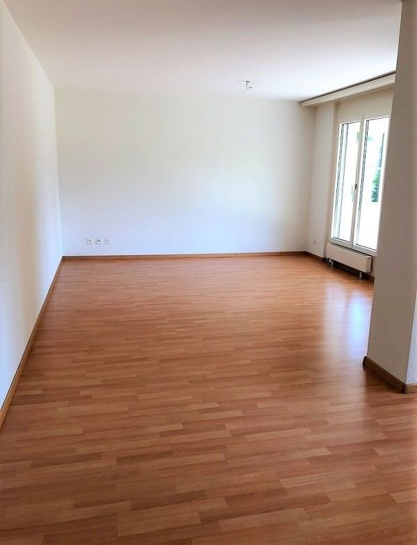 Beim Betreten der Wohnung empfängt Sie ein einladender Eingangsbereich mit praktischer Garderobe. Rechts befindet sich das helle Badezimmer, während das grosszügige Schlafzimmer mit hochwertigem Laminatboden überzeugt. Der offene Wohn- und Essbereich mit angrenzender Küche besticht durch raumhohe Fenster, die für viel Tageslicht und ein angenehmes Wohngefühl sorgen. Vom Wohnbereich aus gelangen Sie auf den überdachten Sitzplatz, der zum Verweilen und Entspannen einlädt.