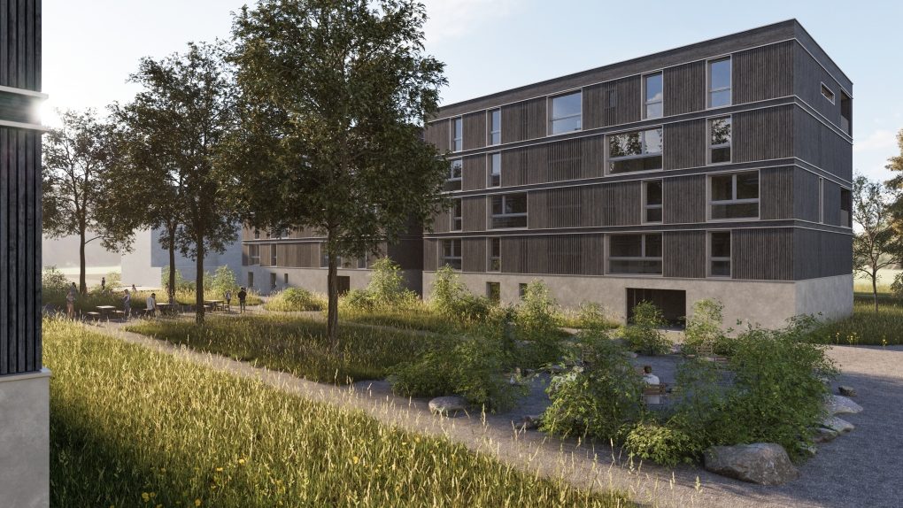 Die Wohnüberbauung Oberfeld Süd wird grundlegend modern und energieeffizient geplant und realisiert. Die Gebäude werden nach MINERGIE-A-Standards zertifiziert, was ein komfortables Raumklima gewährleistet. Die äussere Gestaltung mit Fassadenverkleidung aus Holz und hochwertigen Holz-Metallfenstern bietet nicht nur Ästhetik, sondern auch Funktionalität. Moderne Lüftungssysteme sorgen für frische Luft, während hochwertige Sanitärapparate und topmoderne Einbauküchen Bequemlichkeit bieten. Die hochwertigen Bodenbeläge, wie rustikales Eichenparkett in den Wohnbereichen und Fliesen in den Nasszellen, verleihen den Räumen eine angenehme Atmosphäre.