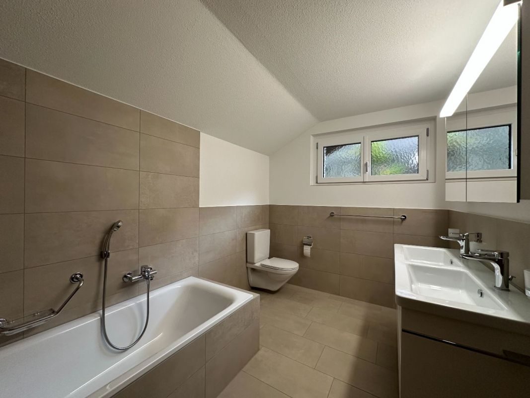 Diese frisch renovierte 3.5-Zimmer-Wohnung befindet sich im Dachgeschoss eines gepflegten Mehrfamilienhauses in zentraler Lage von Triesenberg und bietet ein angenehmes Wohnambiente mit viel Charme. Die Wohnung überzeugt durch eine hochwertige Materialwahl mit Parkett im Wohnzimmer, Laminat in Küche und Schlafzimmer sowie pflegeleichten Steinböden im Gang und in den Badezimmern. Die stilvollen Holzdecken unterstreichen den besonderen Charakter der Dachgeschosswohnung und sorgen für eine warme, gemütliche Atmosphäre.