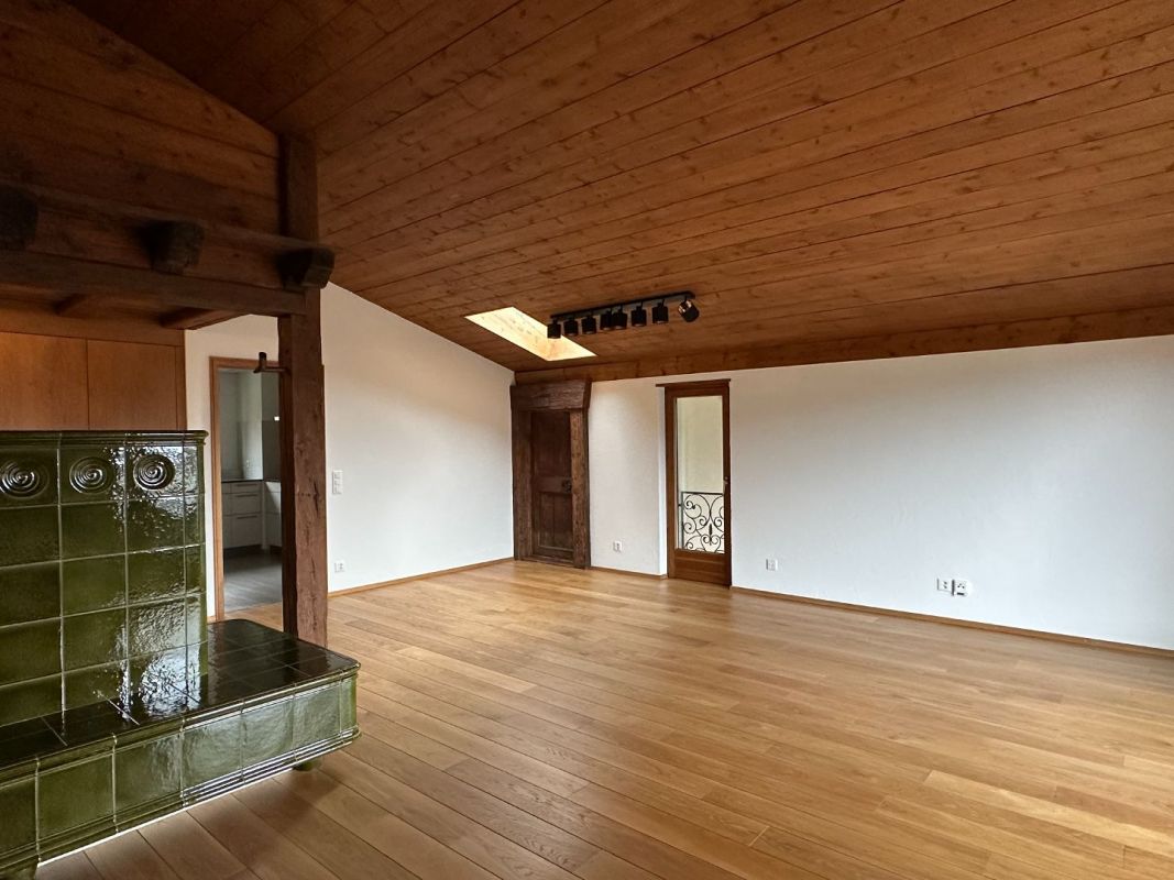 Ein traditioneller Ofen mit integrierter Ofenbank schafft behagliche Wärme und lädt zum Verweilen ein. Zusätzlich verfügt die Wohnung über einen begehbaren Kleiderschrank, der komfortablen Stauraum bietet. Grosszügige Abstellflächen mit insgesamt knapp 70 m² eröffnen aussergewöhnlich viel Platz und vielfältige Nutzungsmöglichkeiten.