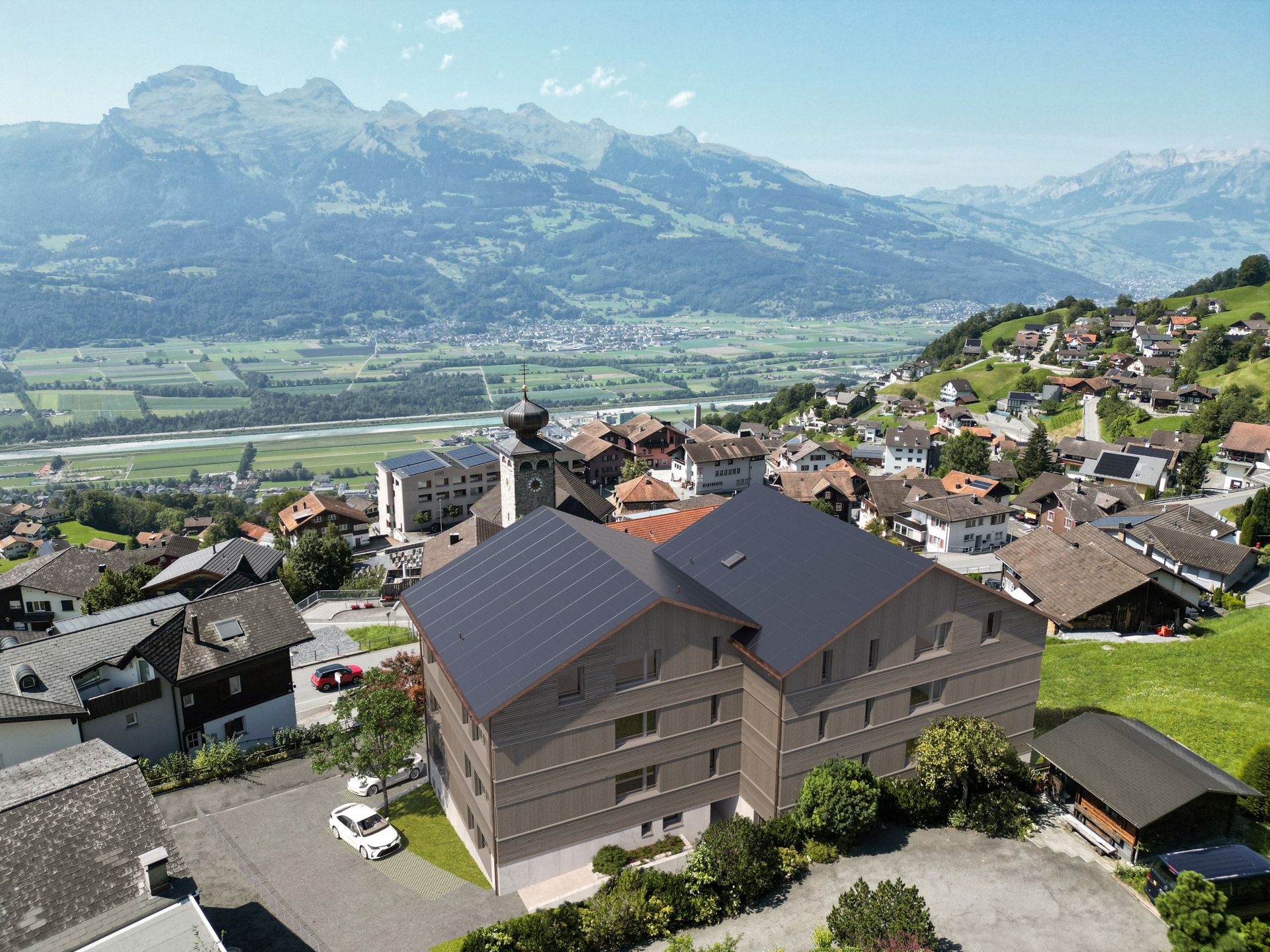 An zentraler und ruhiger Wohnlage im Dorfzentrum von Triesenberg entstehen bis 2027 diese modernen Eigentumswohnungen. Das Wohnkonzept wird den Anforderungen nach familienfreundlichem und altersgerechtem Wohnen in vielerlei Hinsicht gerecht. Die atemberaubende Aussicht auf die umliegenden Berge, die Landschaft und das Rheintal spricht für sich.
