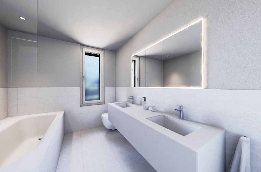 Das Mehrfamilienhaus wird in Massivbauweise erstellt. Eine umweltfreundliche Wärmeerzeugung ist durch die Luft-/Wasser-Wärmepumpe, kombiniert mit einer dachintegrierten PV-Anlage, gewährleistet. Die Küchen sind modern ausgestattet und verfügen über elegante Kochinseln. Der Bodenbelag wird mit hochwertigen Feinsteinzeugplatten und edlem Eichenparkett realisiert.