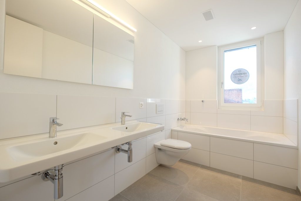 Die hellen, barrierefreien Wohnung mit 98 m2 Wohnfläche und 15 m2 Balkon sind nach MINERGIE-A-Standard gebaut und hochwertig ausgestattet – mit Parkett, modernen Küchen und Bädern sowie Lift von der Tiefgarage bis zu den Wohngeschossen. Eine Fussbodenheizung und Komfortlüftung sorgen für angenehmes Raumklima.