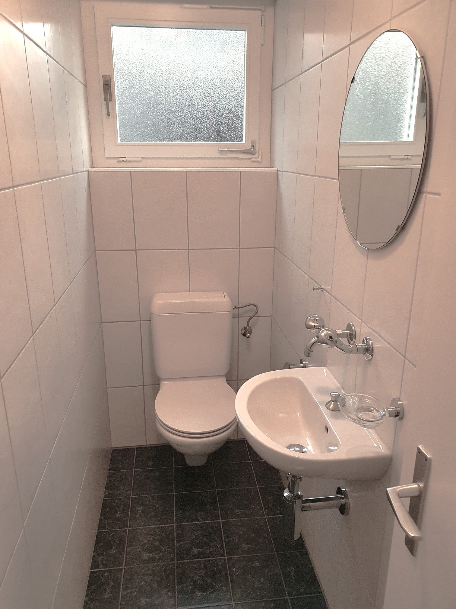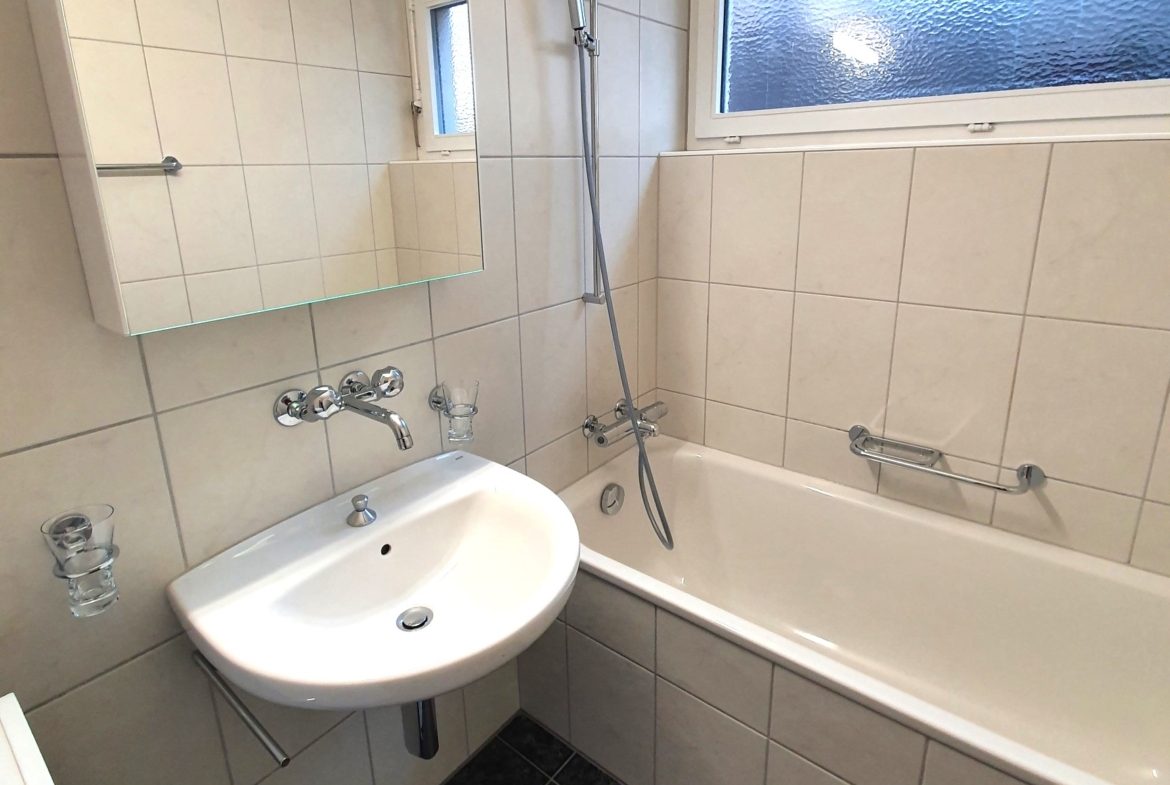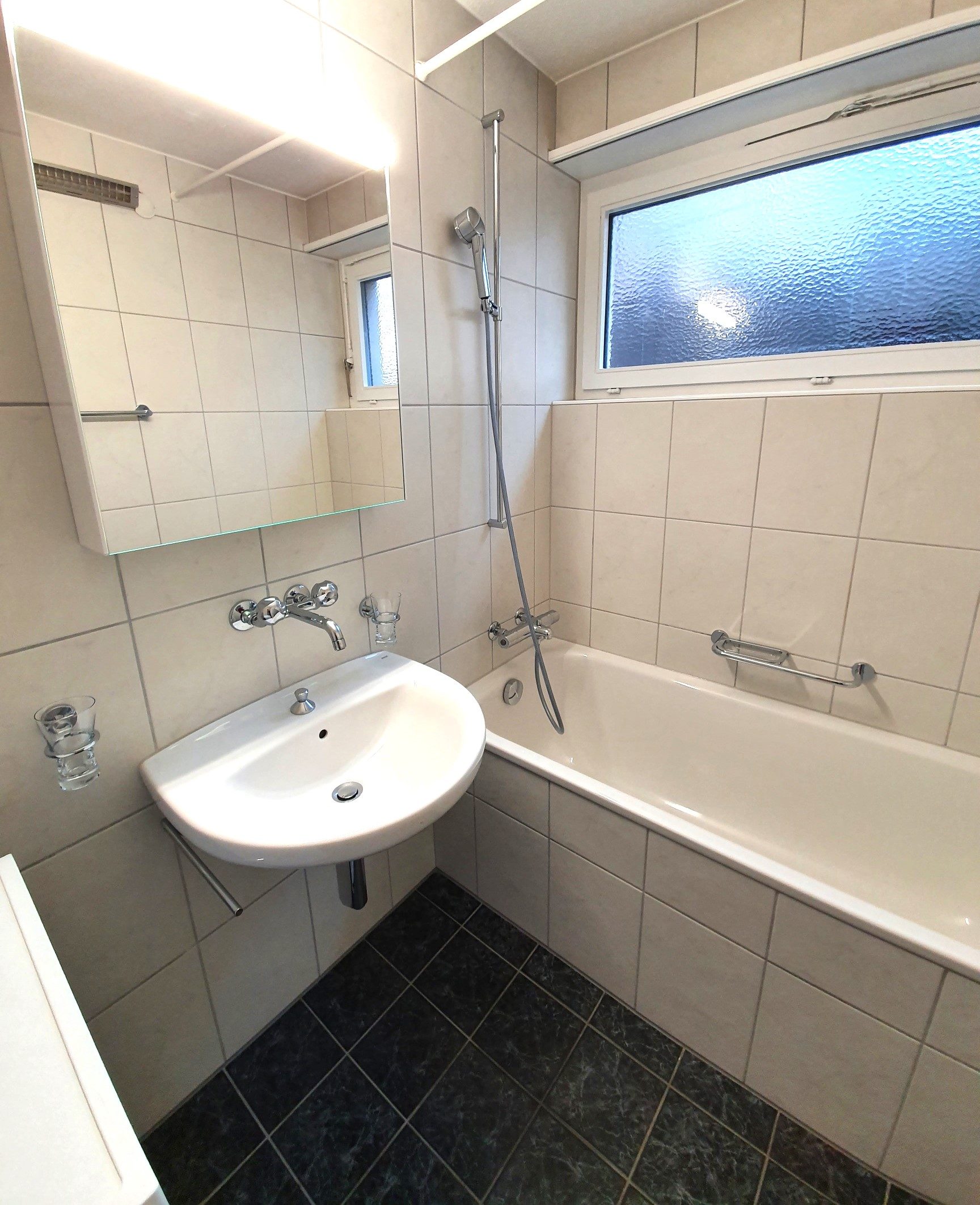 Das Badezimmer verfügt über ein Waschbecken, ein Bidet sowie über eine Badewanne. Auf Wunsch des Mieters kann eine Waschmaschine eingebaut werden. Sie haben aber auch die Möglichkeit die allgemeine Waschküche zu nutzen (nur 2 Parteien).