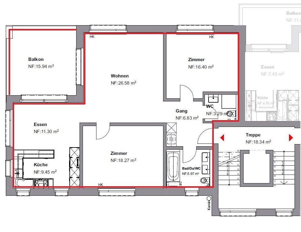 Zur Wohnung gehören zudem ein Kellerabteil, ein Lift ist vorhanden, und Waschmaschine sowie Tumbler stehen zur Mitbenützung zur Verfügung. Pro Wohnung ist ausserdem ein Carport für CHF 100.00 sowie ein Aussenabstellplatz für CHF 50.00 vorgesehen.