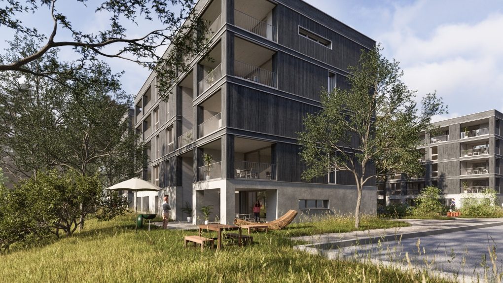 Die Wohnüberbauung Oberfeld Süd wird grundlegend modern und energieeffizient geplant und realisiert. Die Gebäude werden nach MINERGIE-A-Standards zertifiziert, was ein komfortables Raumklima gewährleistet. Die äussere Gestaltung mit Fassadenverkleidung aus Holz und hochwertigen Holz-Metallfenstern bietet nicht nur Ästhetik, sondern auch Funktionalität. Moderne Lüftungssysteme sorgen für frische Luft, während hochwertige Sanitärapparate und topmoderne Einbauküchen Bequemlichkeit bieten. Die hochwertigen Bodenbeläge, wie rustikales Eichenparkett in den Wohnbereichen und Fliesen in den Nasszellen, verleihen den Räumen eine angenehme Atmosphäre.