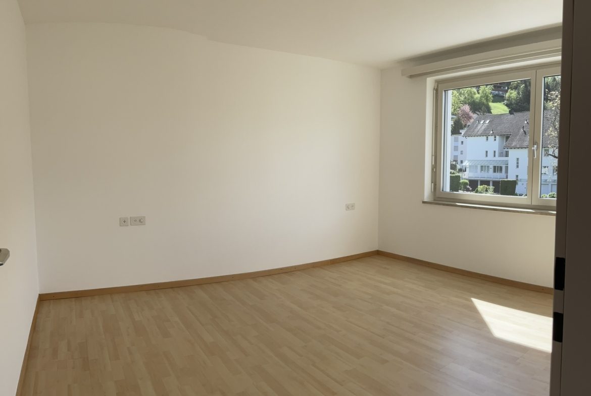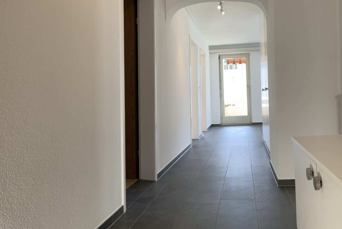Die Wohnung verfügt über eine separate Küche mit Geschirrspüler, der Backofen ist auf Arbeitshöhe. Sowie drei weitere Zimmer. Vom Wohnzimmer aus gelangen Sie auf den grosszügigen gedeckten Balkon. Das Badezimmer ist mit Tageslicht, einer Badewanne und einem Doppellawabo ausgestattet. Ein separates WC runden den Komfort ab.