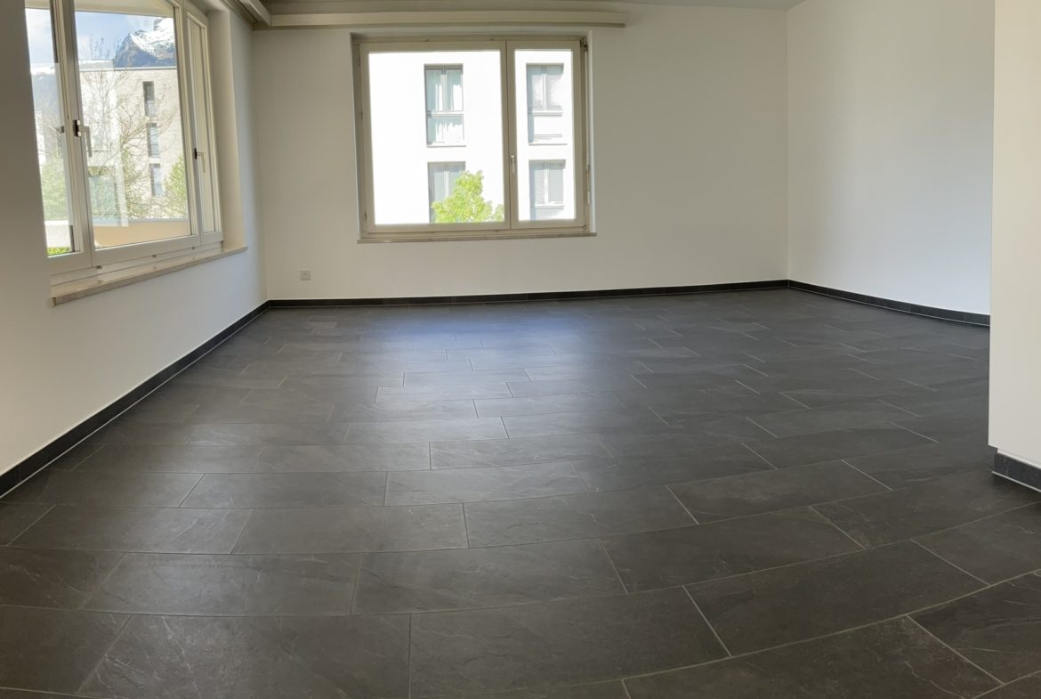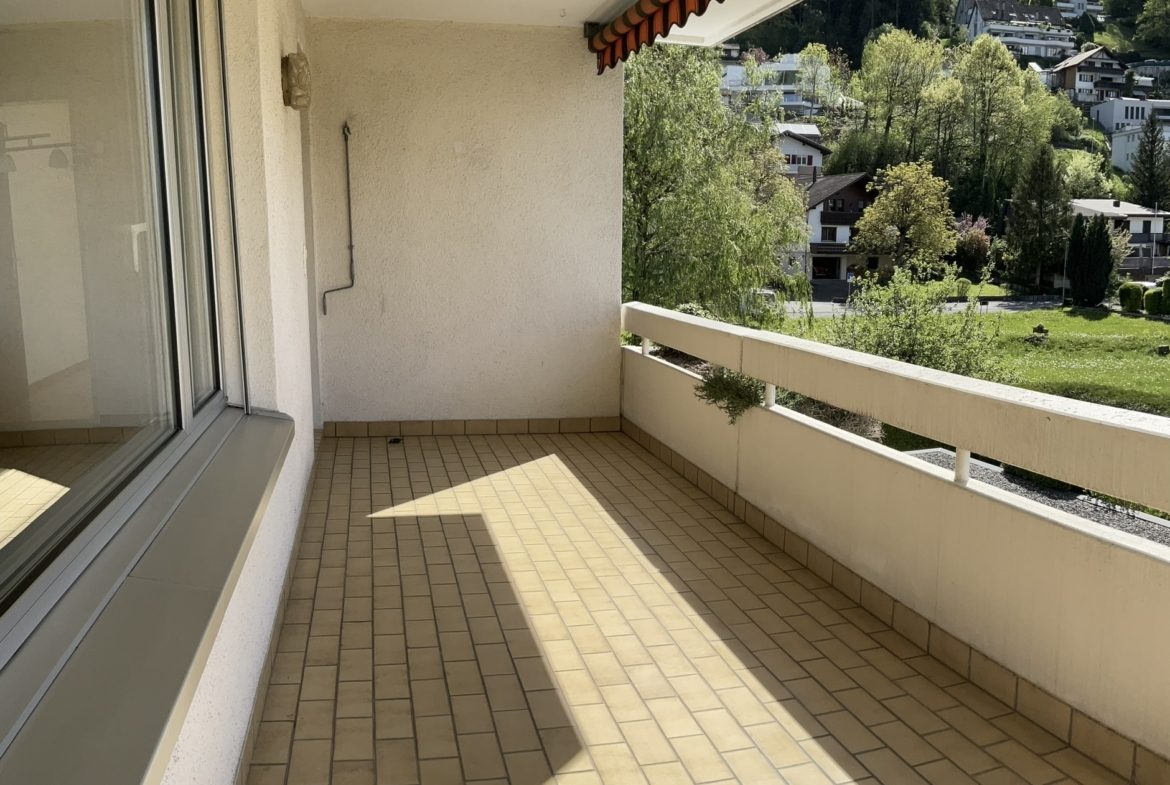 Aufgrund der süd-westlichen Ausrichtung bietet die Wohnung einen wunderschönen Blick auf die Berge, welchen man vom grossen Balkon geniessen kann.