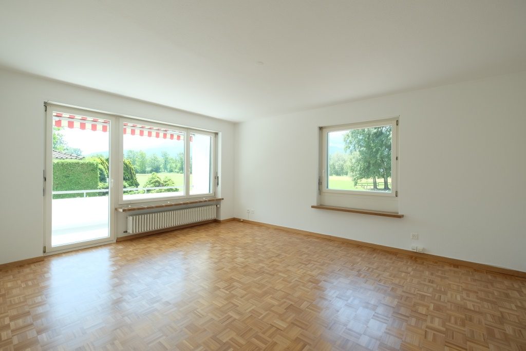 Die Wohnung verfügt über eine separate Küche sowie drei weitere Zimmer. Vom Wohnzimmer aus gelangen Sie auf den Balkon, welcher nach Süden ausgerichtet ist. Die Nasszelle mit Tageslicht ist mit einer Badewanne und einem Doppellavabo ausgestattet. Es steht Ihnen ein separates Gäste-WC zur Verfügung.