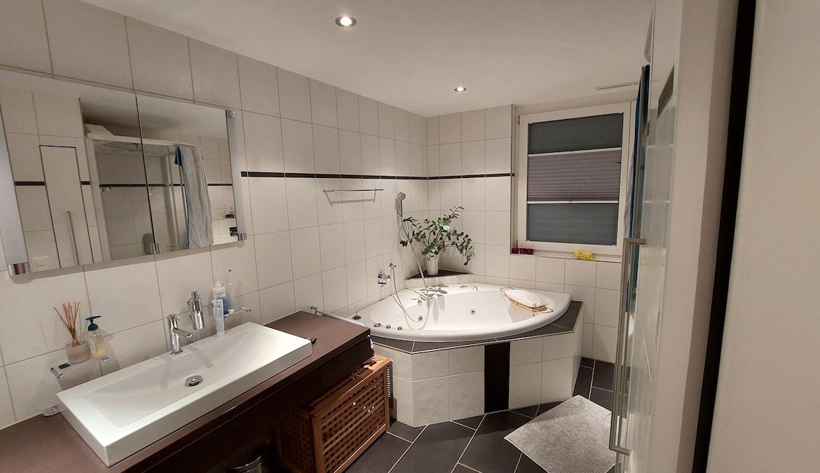 Moderne 4.5-Zimmerwohnung mit grossem Garten (150 m2) und 117.4 m2 Wohnfläche. Das Wohnobjekt verfügt über einen sehr guten Innenausbau und bietet unter anderem ein Badezimmer mit Whirl-Wanne, Dampfdusche, ein kontrolliertes Lüftungssystem, Sauter Sicherheitsanlage (NOX). Die Wohnräume sind ideal eingeteilt und bringen ein angenehmes Wohnambiente mit sich.