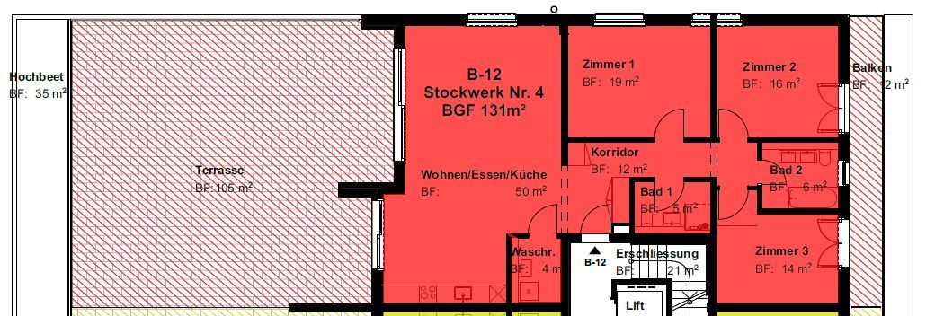 Wohnfläche: 126 m² mit grosszügigem, lichtdurchflutetem Grundriss