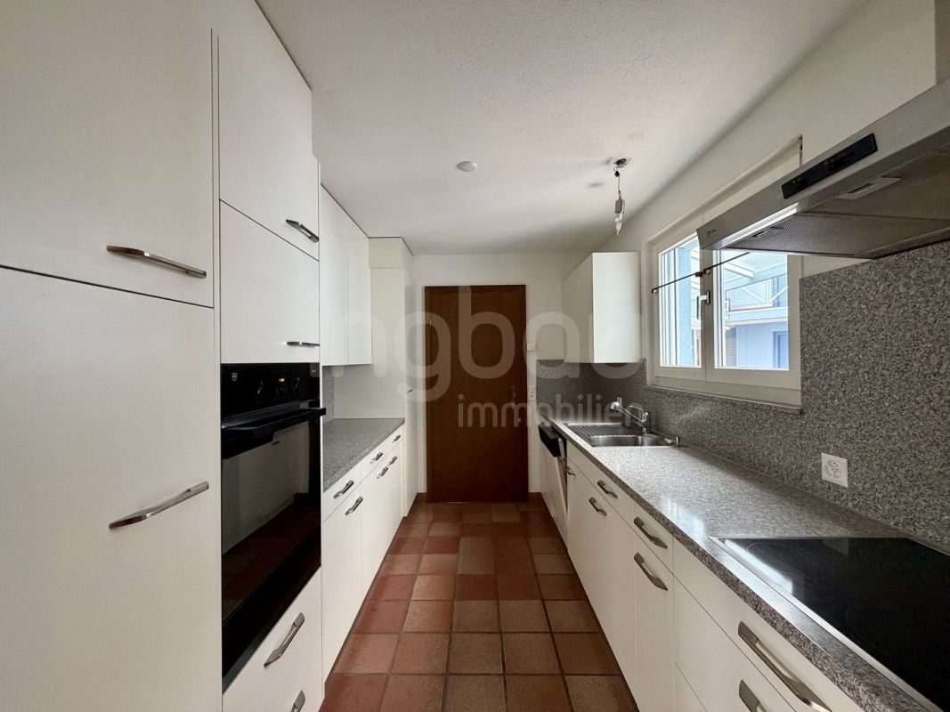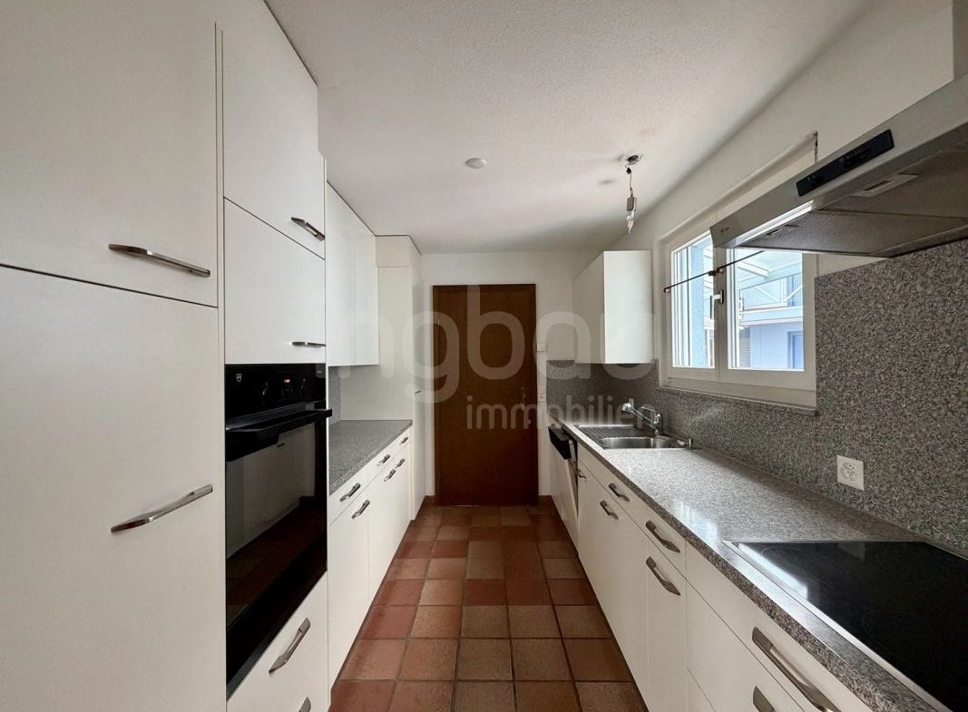 Der durchdachte Grundriss und die Maisonette-Aufteilung sorgen für eine angenehme Trennung von Wohn- und Rückzugsbereichen. Ein Cheminée im Wohnzimmer schafft eine gemütliche Atmosphäre. Die Küche wurde im Jahr 2010 renoviert und ist funktional ausgestattet.