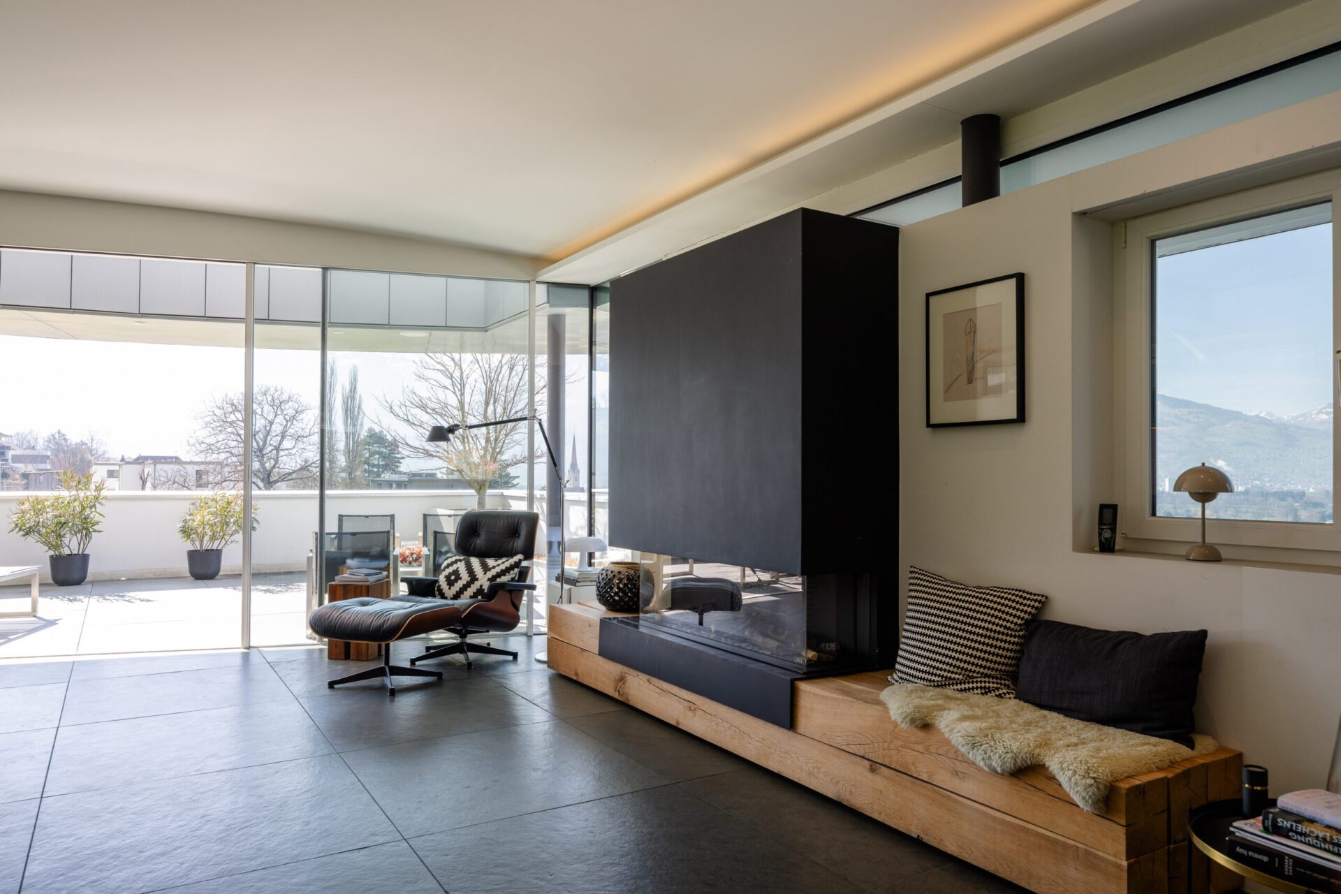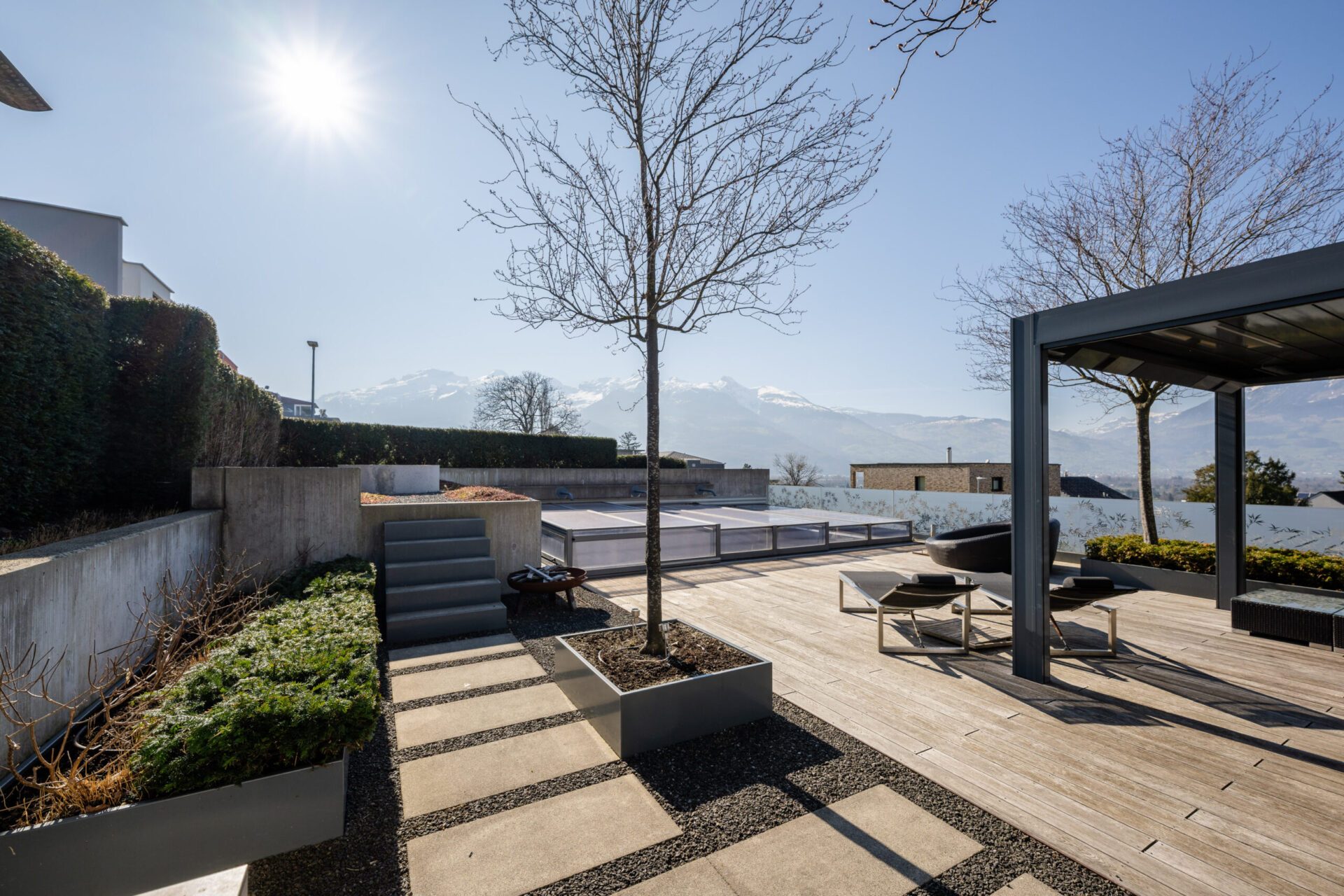 Die Lage im Villenviertel von Schaan ist sehr ruhig und erhöht, bietet eine wunderschöne Aussicht auf die Schweizer Bergwelt und ist durch die Naturnähe ein einzigartiger Ausgangspunkt für sämtliche Sportarten in freier Natur.