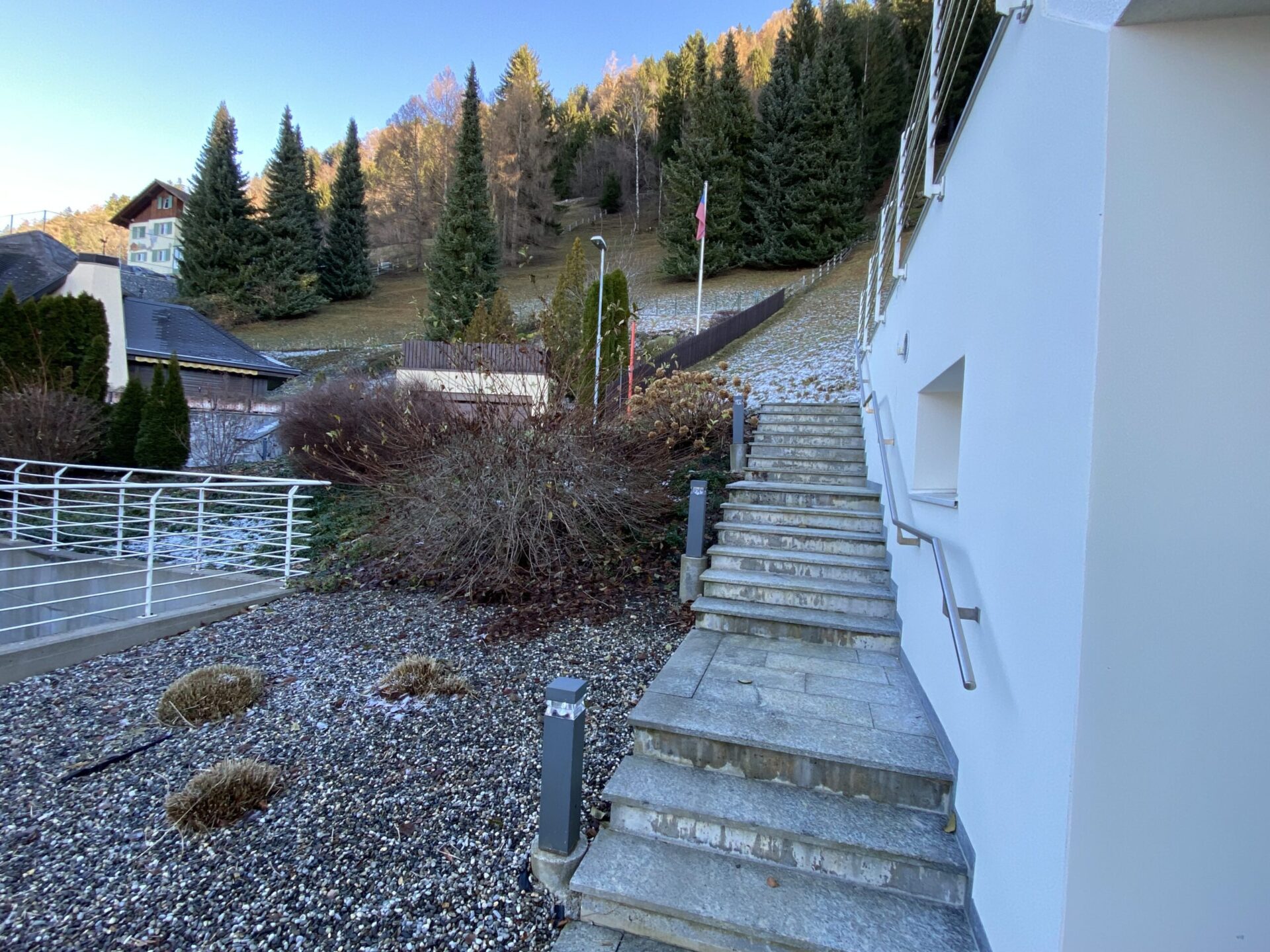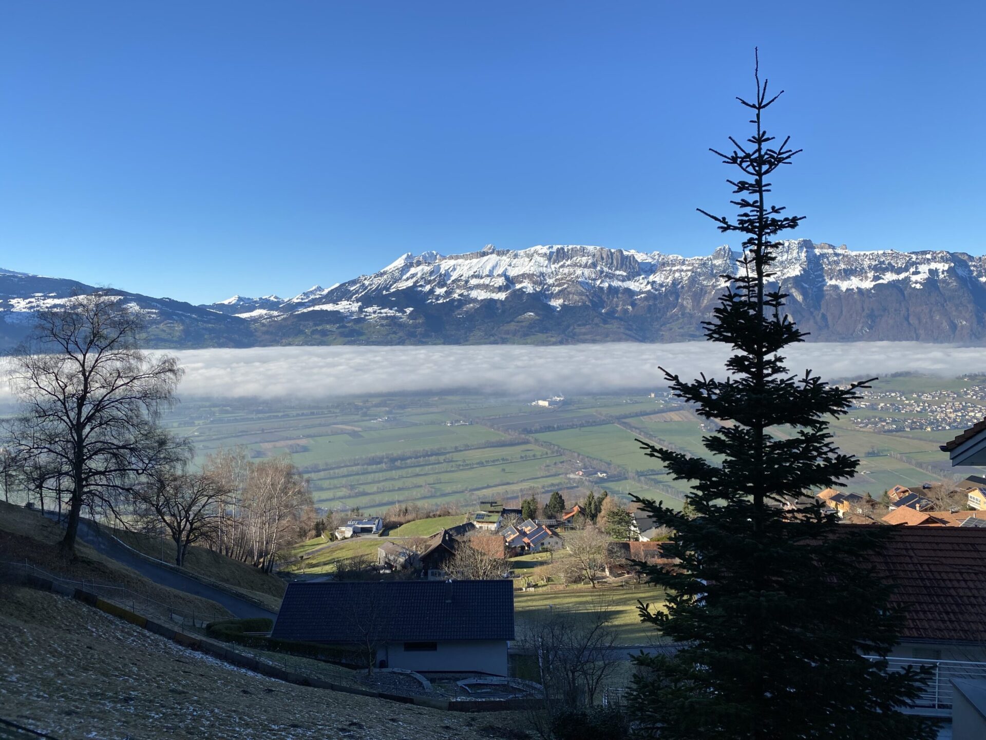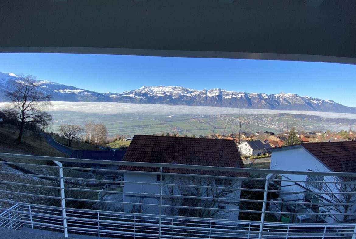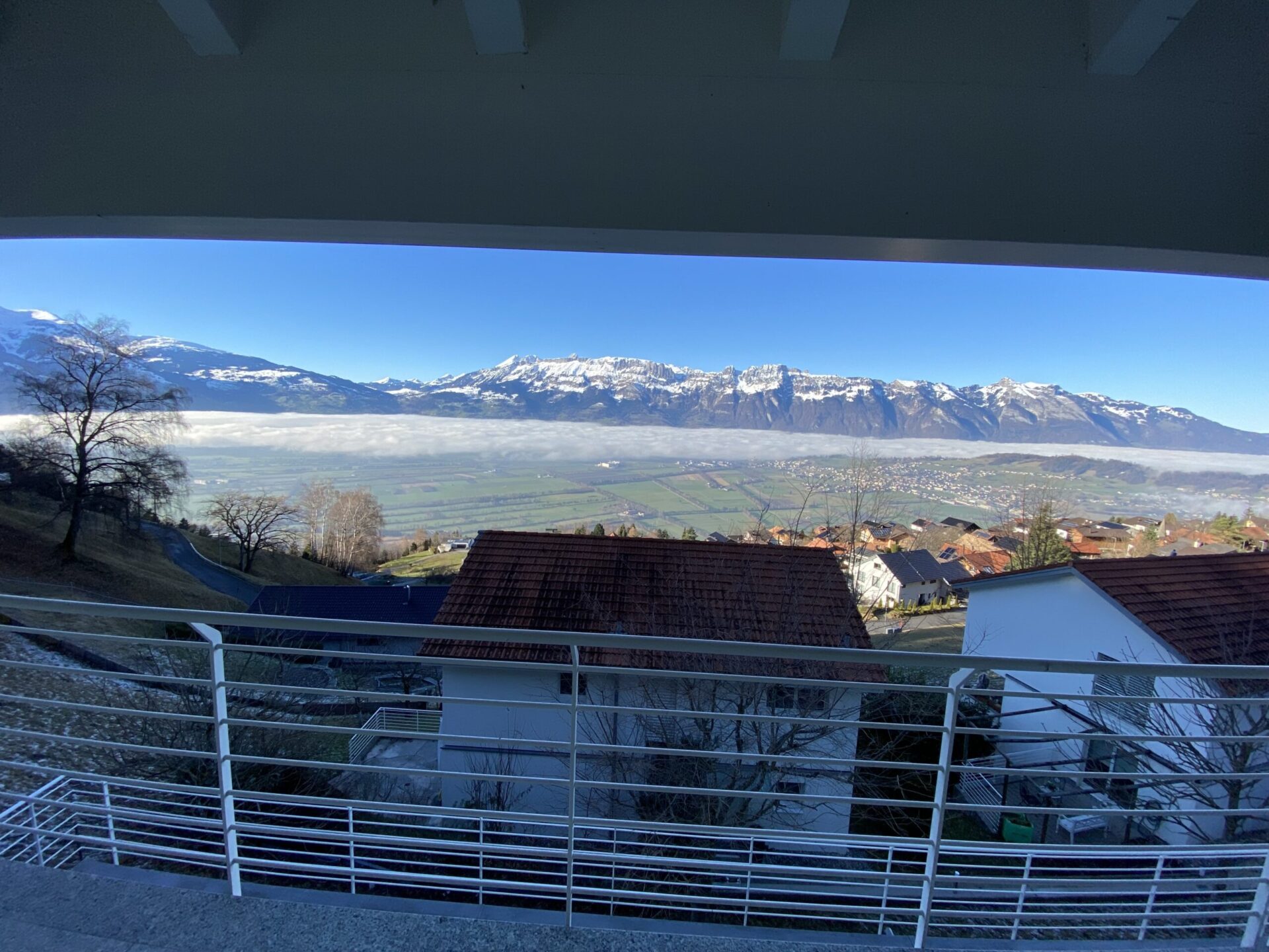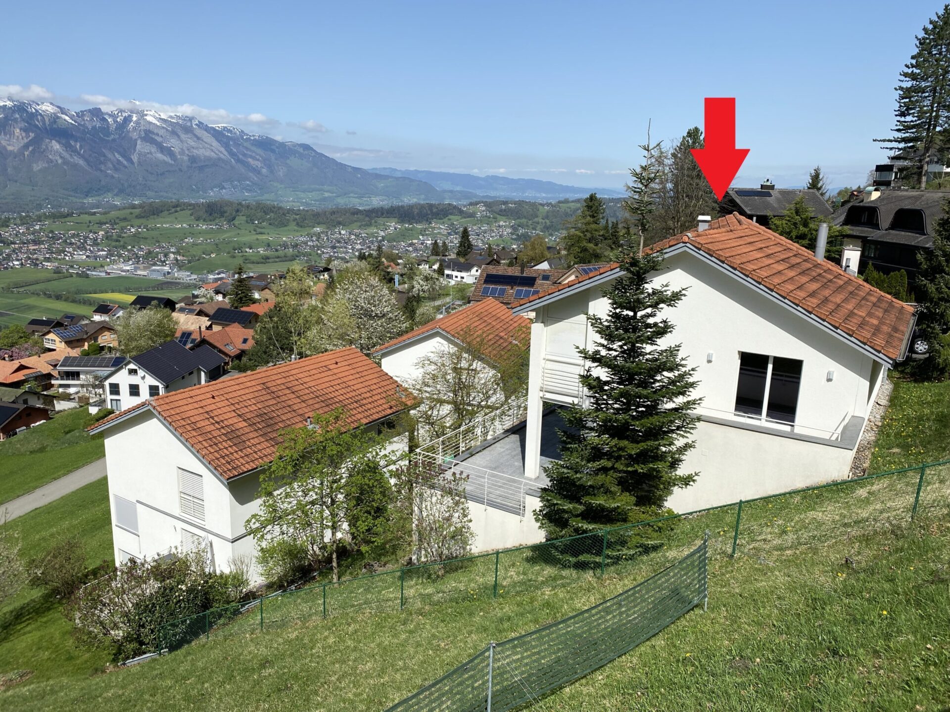 Das Haus (D) ist Teil einer Stockwerkeigentümergemeinschaft mit insgesamt vier Einfamilienhäuser (A-D) und ist in Terrassenbauweise ausgeführt. Das Objekt steht an erhöhter Panoramaaussichtslage in Planken mit Blick über das Rheintal und die Schweizer Bergwelt.