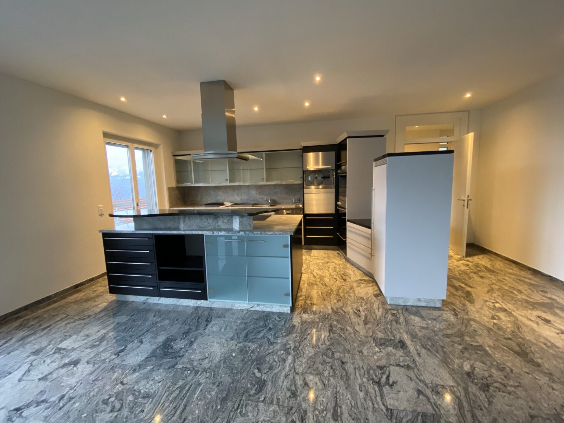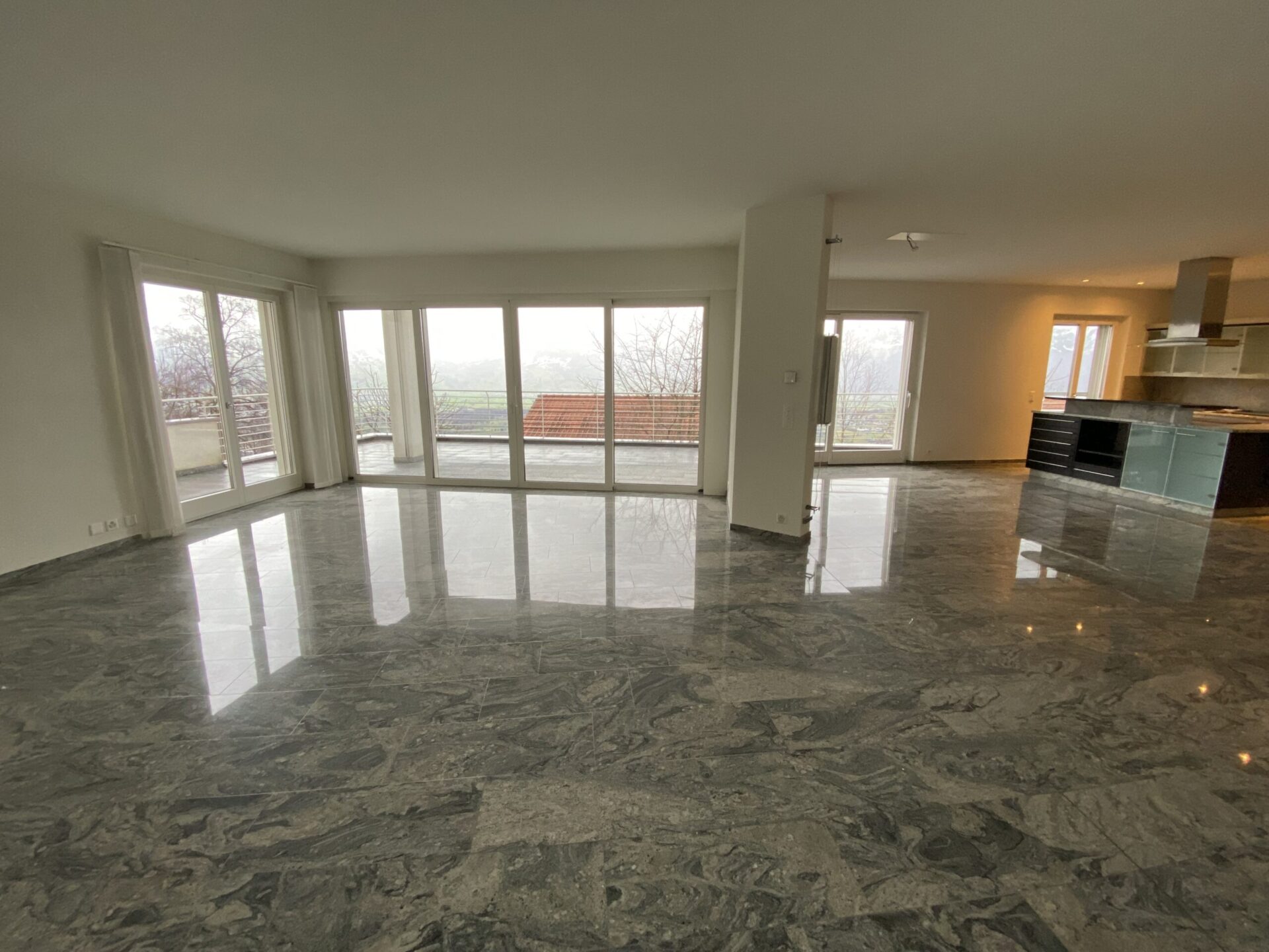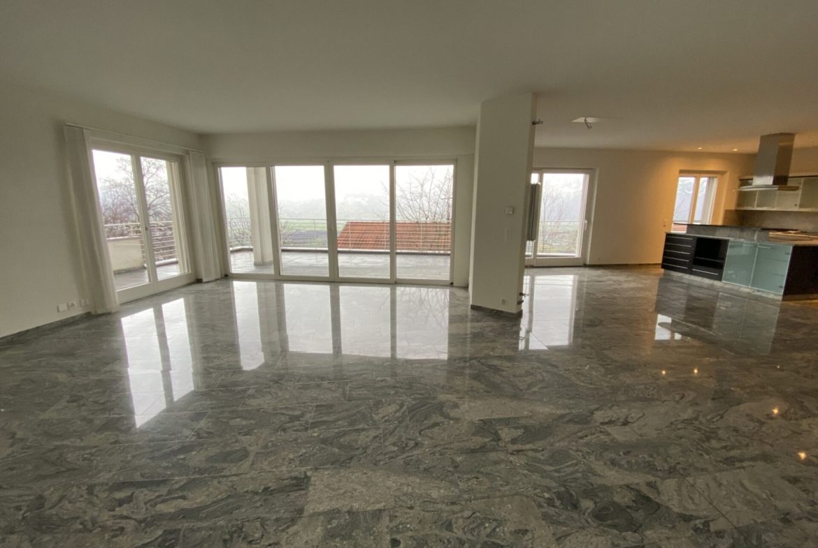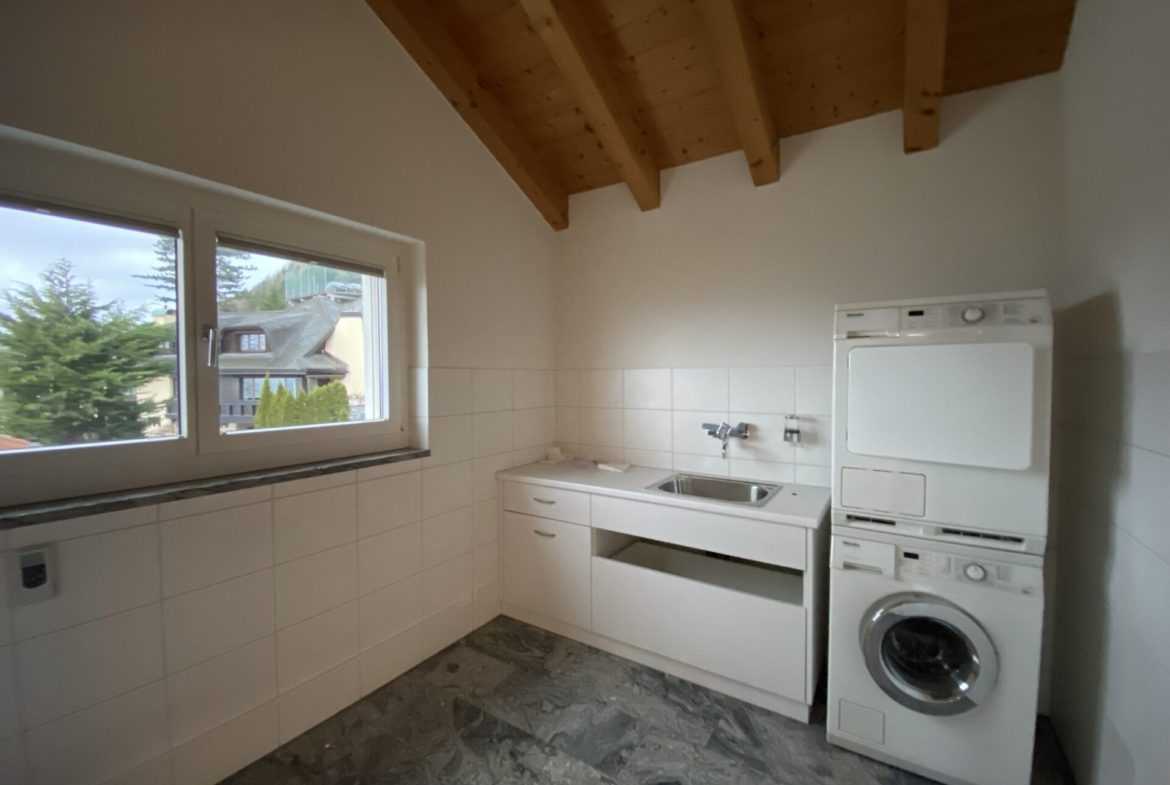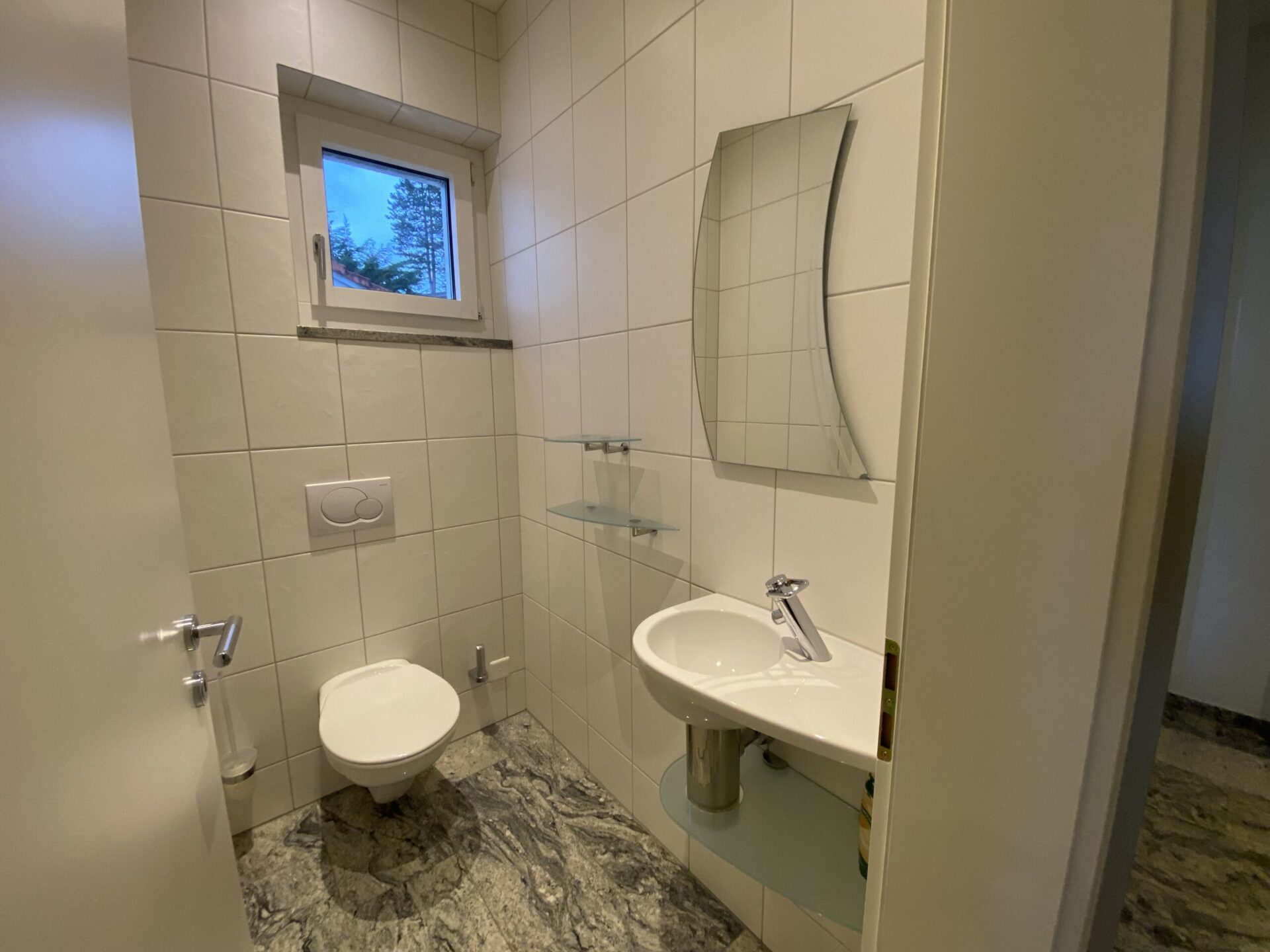 Die Materialien im Innenbereich des Hauses sind hochwertig gewählt. Ein eleganter Steinboden führt durch das gesamte Haus. Im Wohnbereich gibt es ein Cheminée, welches für eine wohlige Atmosphäre sorgt und eine Abtrennung zum Eingangsbereich bietet. Die moderne Küche punktet mit vielen Extras. Eine grosse, teils gedeckte Terrasse führt um den Küchen-/Wohn-Essbereich und bietet einen wunderbaren Ausblick. Die Raumeinteilung des Hauses ist grosszügig und offen gestaltet. Zwei Schlafzimmer im Obergeschoss haben jeweils Zugang auf den Balkon. Eine geräumige Ankleide bietet entsprechenden Stauraum für Kleidung etc.