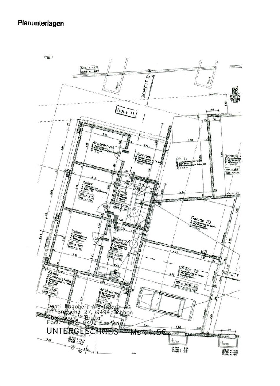 Im Untergeschoss befindet sich ein zweiter Eingang von der Tiefgarage und Einstellplatz. Insgesamt besteht eine Parkmöglichkeit für drei Autos. Der Eingangsbereich ist mit einer Garderobe ausgestattet. Ein Bewirtschaftungsraum mit Waschmaschine und Trockner und zusätzlich drei Kellerabteile mit insgesamt mit ca. 50 m².