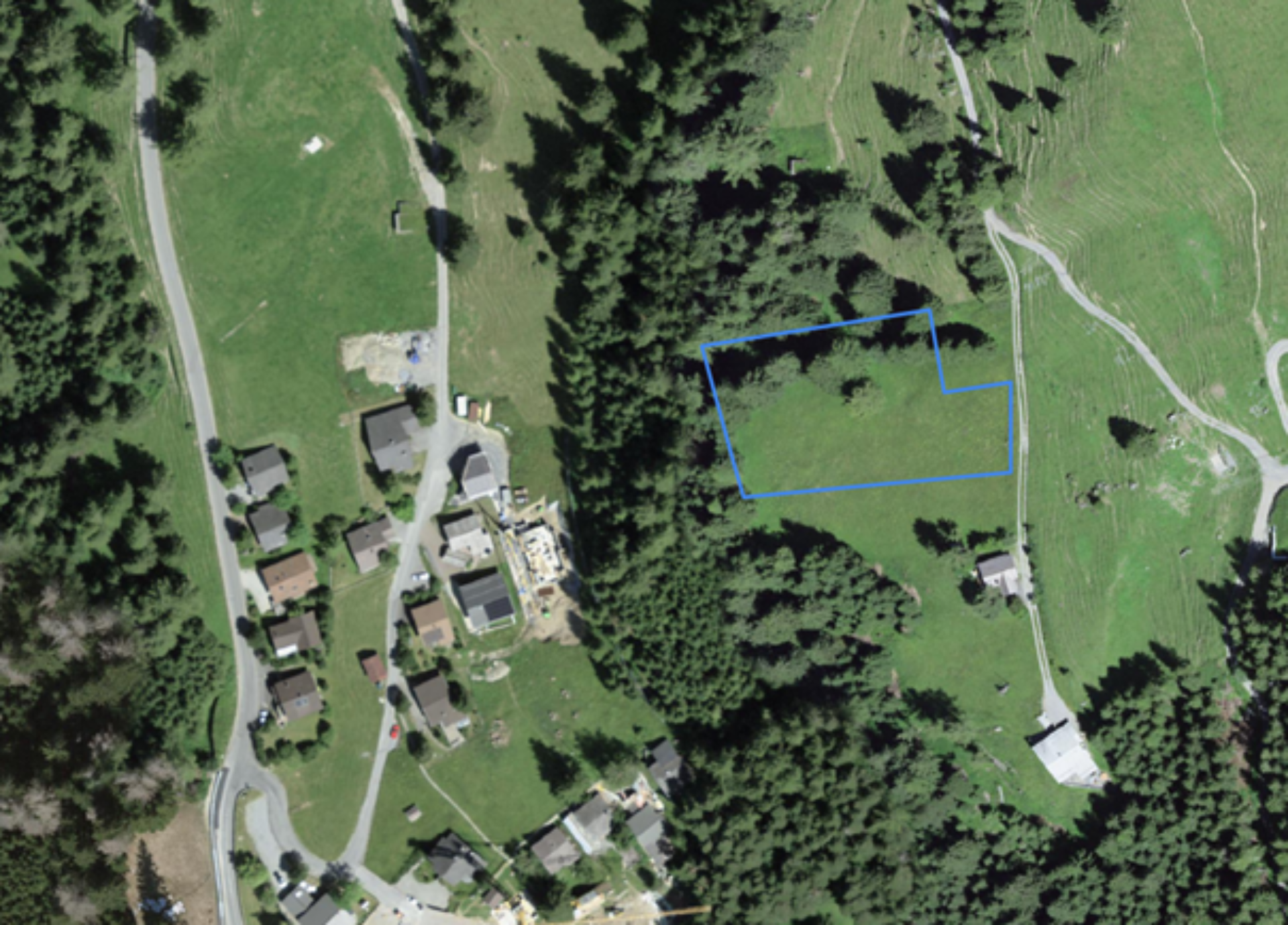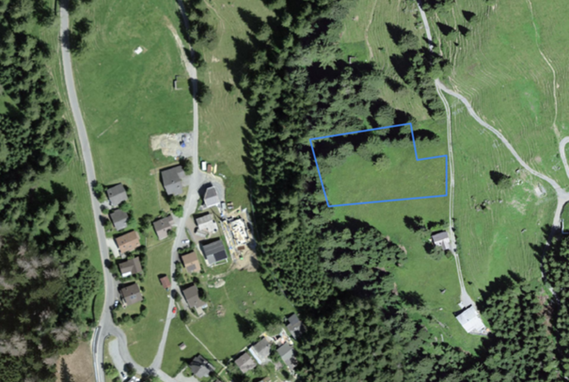 Das Grundstück wird über einen bekiesten Bergweg in Richtung Alp Bargälla, der in einer ruhigen Sackgasse endet, erreicht.