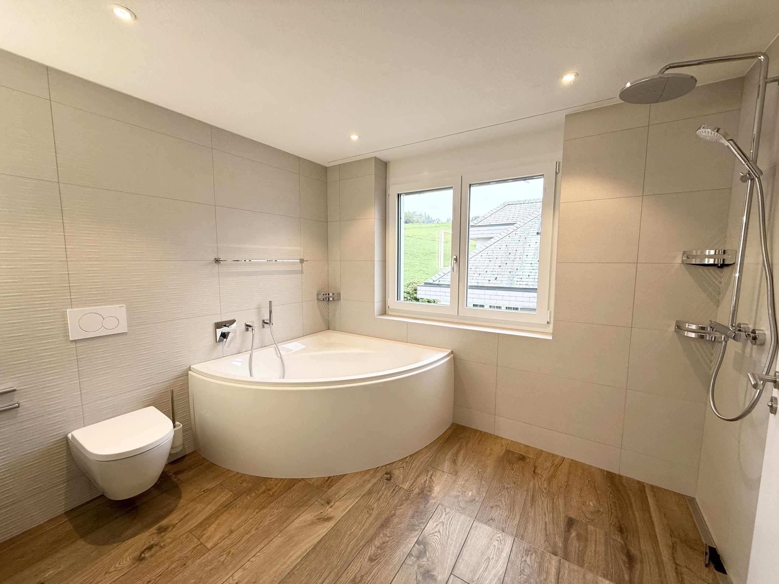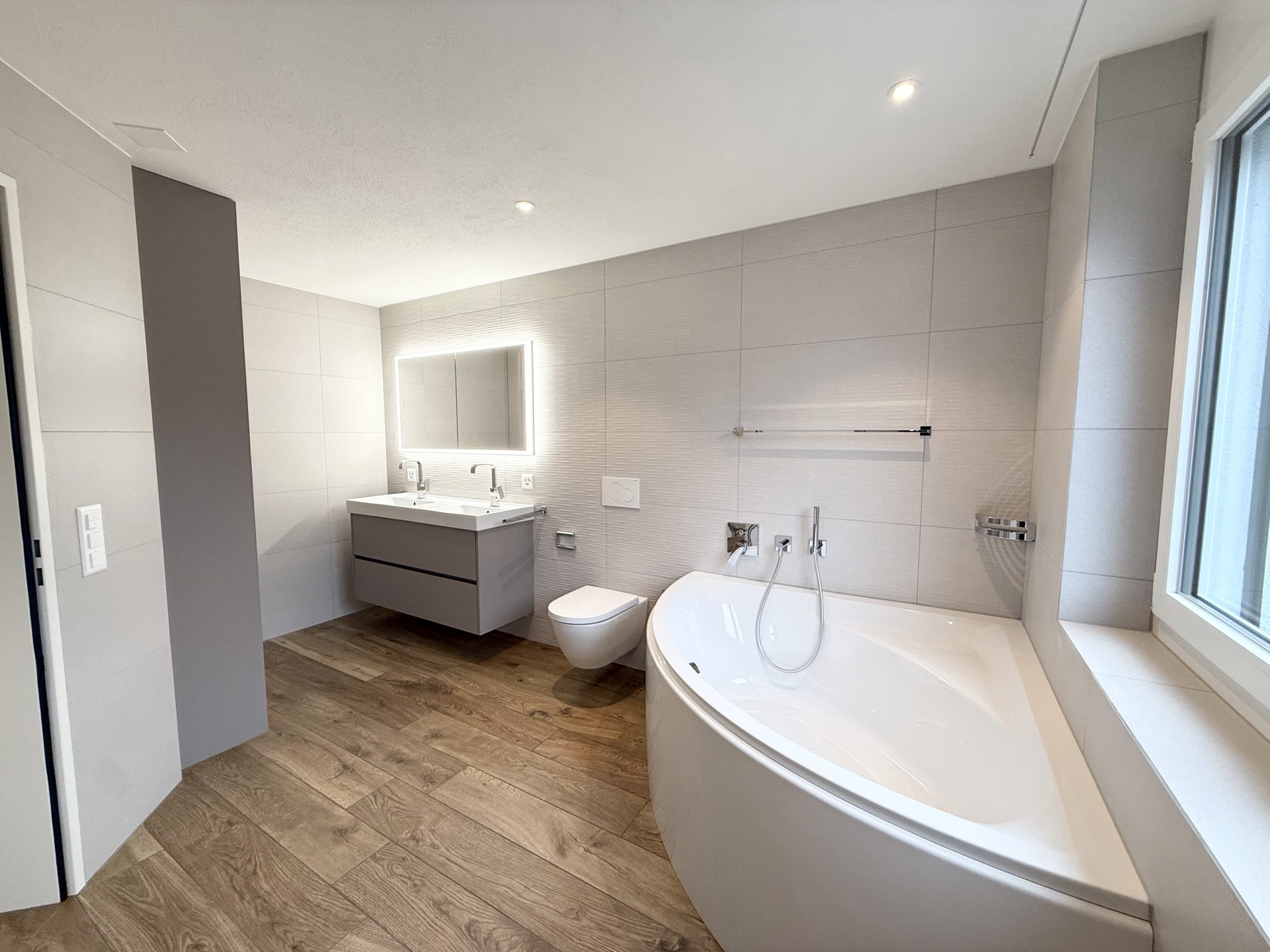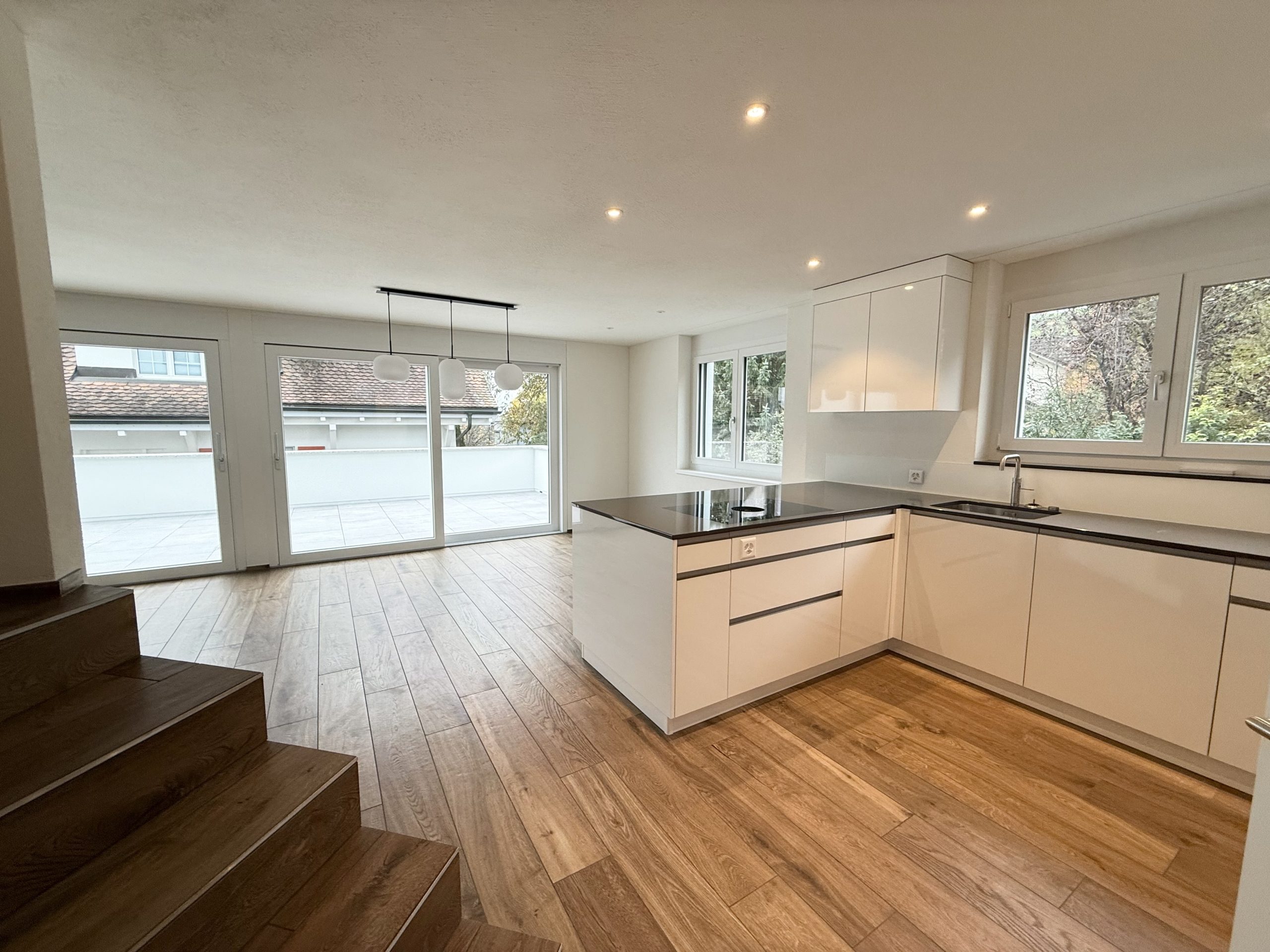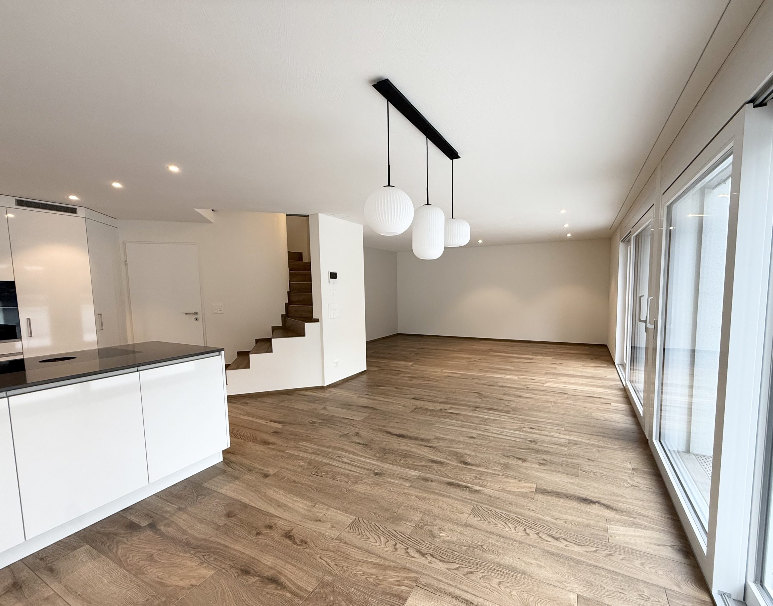 In Eschen entsteht an sonniger und leicht erhöhter Lage ein attraktives Doppel-Einfamilienhaus, das in zwei Eck-Reihenhäuser aufgeteilt ist. Die moderne und lichtdurchflutete Architektur sorgt für ein helles Wohnambiente und bietet höchsten Wohnkomfort. Das Grundstück umfasst 75.63 Klafter und die Wohnfläche beträgt grosszügige 146 m². Im Untergeschoss befinden sich der Technik- und Waschraum, eine praktische Doppelgarage sowie ein Kellerraum mit zusätzlichem Stauraum. Über einen separaten Eingang mit Garderobe gelangt man ins erste Obergeschoss, wo sich ein Büro oder Zimmer, ein Gäste-WC sowie ein grosszügiger Wohn- und Essbereich mit offener Küche befinden. Von hier aus führt der Zugang auf die grosszügige, teilweise überdachte Terrasse. Im zweiten Obergeschoss erwarten die zukünftigen Bewohner ein modernes Bad mit Dusche und WC, ein Studio, zwei weitere Schlafzimmer sowie ein Elternschlafzimmer mit angrenzender Ankleide. Die Raumaufteilung ist durchdacht und bietet dank klarem Grundriss vielseitige Nutzungsmöglichkeiten. Beheizt wird das Haus mittels effizienter Luftwärmepumpe und auf dem Dach sorgt eine Photovoltaikanlage für nachhaltige Energiegewinnung. Die Lage überzeugt durch die Nähe zu Spazier- und Radwegen sowie zu allen wichtigen Einrichtungen des täglichen Bedarfs. Das Projekt befindet sich bereits in der Bauphase und eine Besichtigung vor Ort ist möglich.