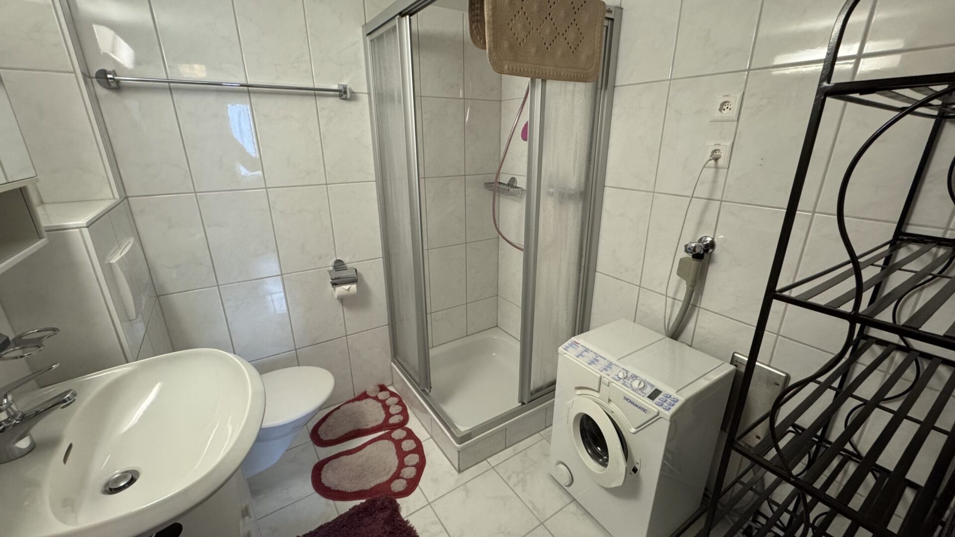 Das Bad wurde mit einer Dusche und neuer Waschmaschine ausgestattet.