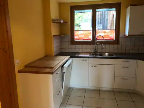 - grosszügige Küche mit allen wichtigen Geräten (Geschirrspüler, Kühlschrank mit kleinem Gefrierfach, Backofen und Herd)